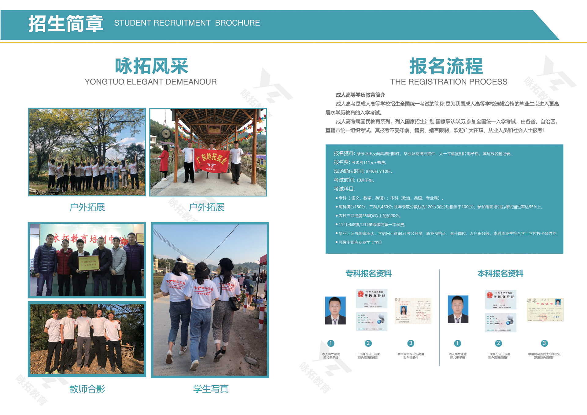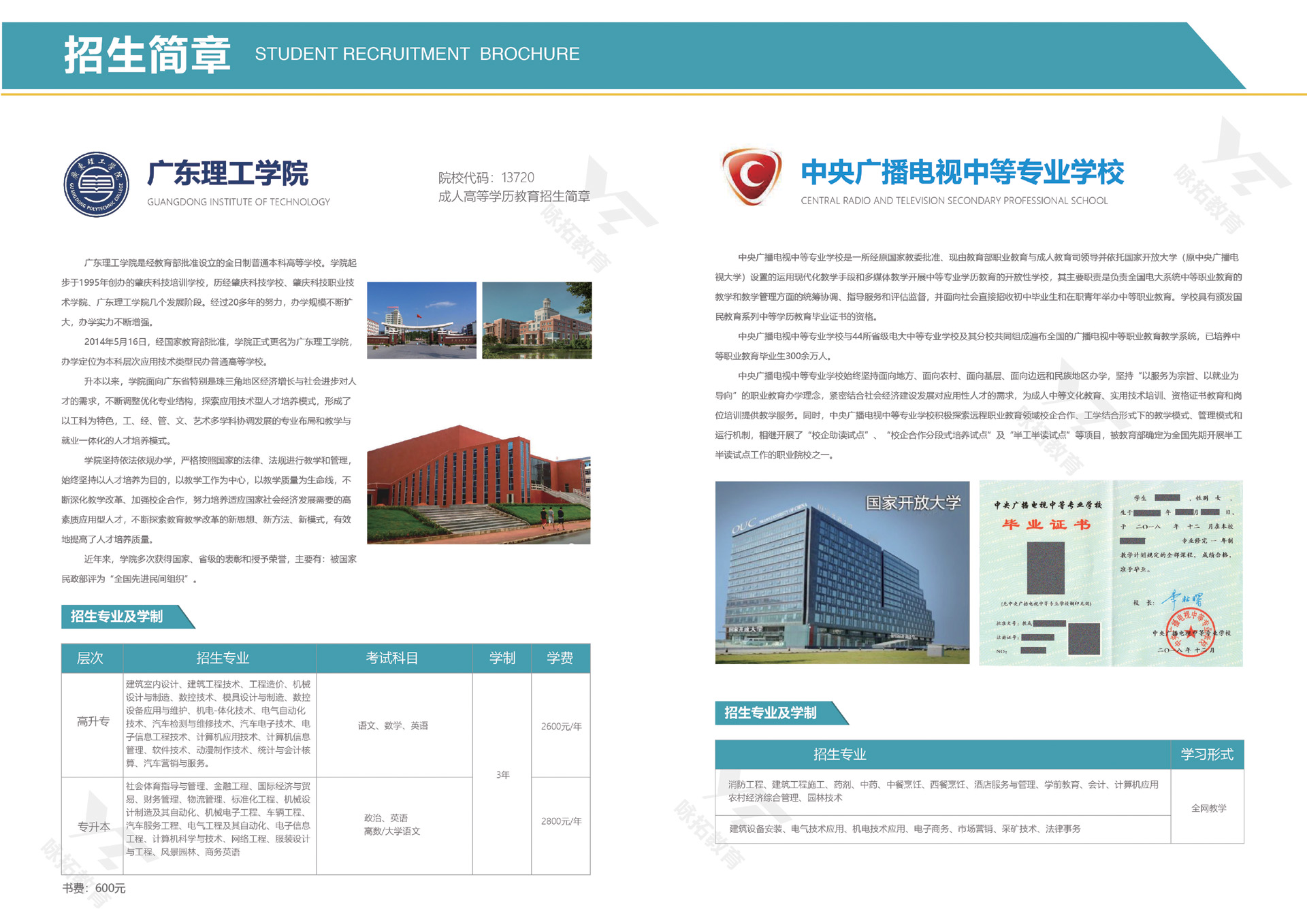 | 自成立以来,咏拓教育先后和广东省内多个知名高校建立合作办学:广东理工学院、广东南方职业学院、广东警官学院、广东开放大学等多所院校。由资深教育服务专家提供技术、招生、资源等多元化服务。学员遍布全国各地,通过课程资源联盟建设,整合各专业名校课程。致力于构建一站式学历提升平台,打造广东省知名教育品牌。 |