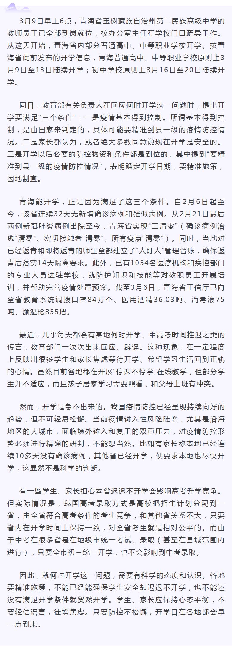 专家评论:满足“三大条件”才开学,需精准施策因地制宜
